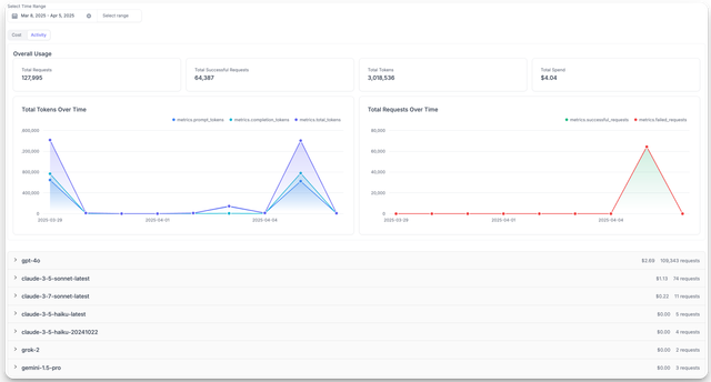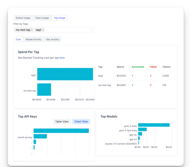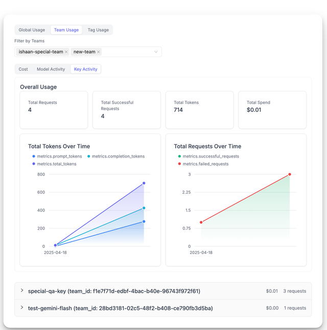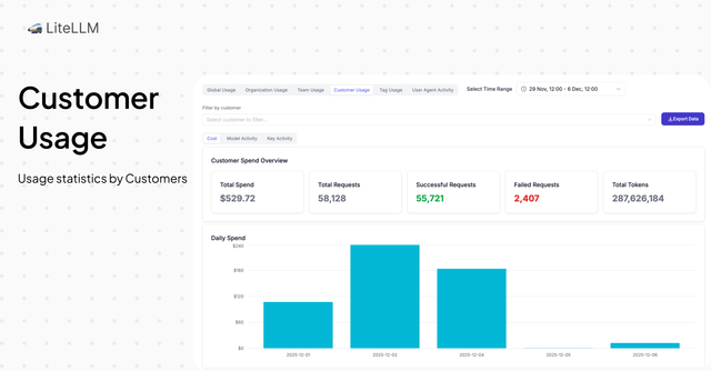 • Filter usage analytics, spend logs, and activity metrics by customer ID